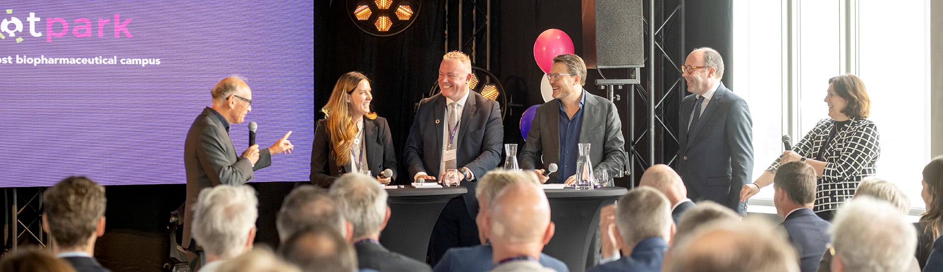 After months of dedication and collaboration, the official opening of the Marie Curie building at the Pivot Park in Oss was opened on Sep 19th, 2024. The Marie Curie building is a multitenant laboratory building which houses Oncolines B.V., the in vitro biology services laboratory of Symeres. The day kicked off with an inspiring keynote speech from Hans Schikan, followed by a dynamic panel discussion where Constantijn Van Oranje-Nassau, Prince of the Netherlands and representatives of the City of Oss, the Province of Noord-Brabant and Pivot Park shared their insights about biopharma and regional and world economics. Guests got the chance to get an exclusive company tour, where Frank den Brok, vice mayor of the City of Oss, and Martijn Gruijthuisen, Minister of Economic Affairs of the Province of Noord-Brabant, took to chance to get an exclusive tour at the Oncolines laboratories and offices, offering a glimpse into the future of personalized medicine and cancer immunotherapy. The day concluded with an official ceremony and a celebratory reception.