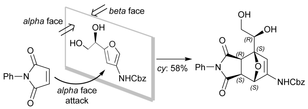 Figure 1. π-Face selectivity in the Diels–Alder cycloaddition of glucosamine-based furans and maleimides.