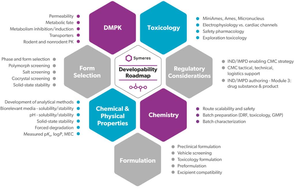 Drug discovery and development entail a multifaceted journey, from identification to market approval. Our proprietary Developability Roadmap package streamlines this process, providing a clear plan of evaluation and action for transitioning from discovery to development.