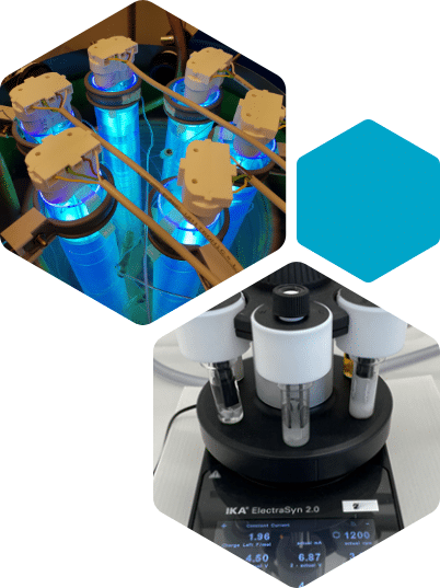 Our experienced teams routinely apply many enabling technologies to the custom synthesis of challenging organic molecules. These include a range of organic chemistry and purification technologies aimed at increasing the efficiency of the chemistry and reducing both risk and environmental impact using green chemistry methodologies. For example, we use flow chemistry  to efficiently run exothermic or photochemical reactions. Biocatalysis, chemocatalysis, electrochemistry, and photoredox catalysis are applied to access molecules that are challenging to synthesize via traditional chemistry methods. Symeres has also 30 years of experience in novel approaches to chiral chemistry. These include classical or biocatalytic resolutions, the use of chiral auxiliaries or catalysts, and chiral pool precursors for asymmetric synthesis. Novel automated purification equipment is standard in our laboratories, including chiral SFC on small to medium scale.